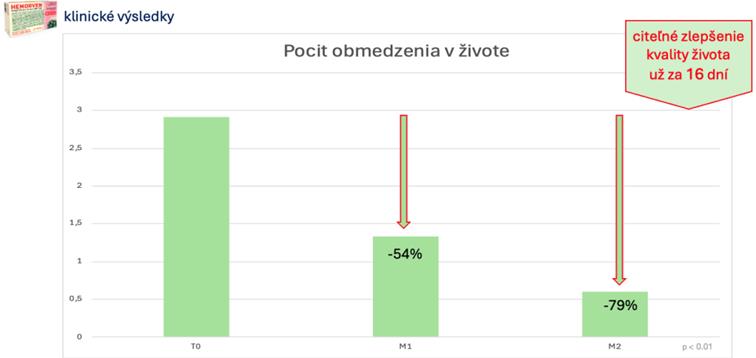 Užívanie produktu HEMORVEN viedlo k úľave od bolesti v konečníku už za 16 dní od prvého užitia, a po prvom mesiaci sa v priemere zmiernilo o 51%.