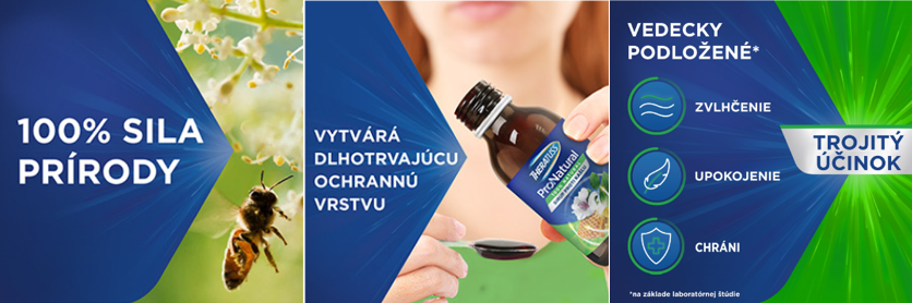 S vedecky podloženým* trojitým účinkom, TheraTuss ProNatural zvlhčuje sliznicu krku, vytvára ochrannú vrstvu a upokojuje kašeľ.