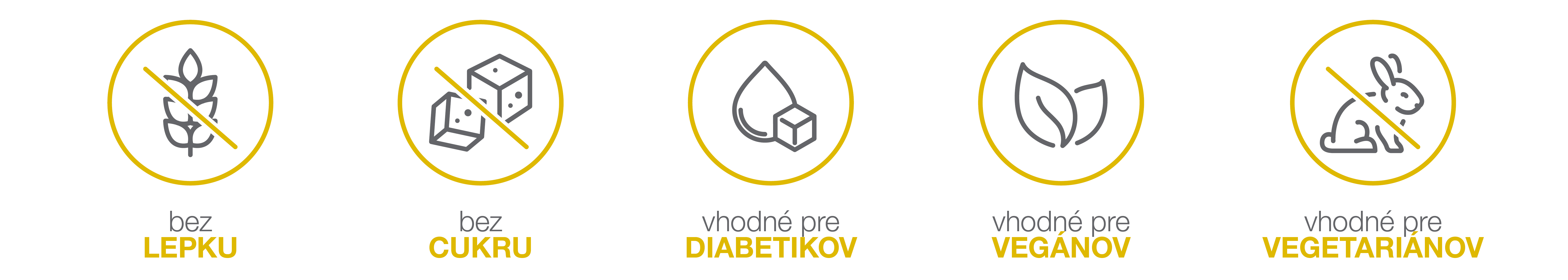 vhodné tiež pre vegánov a vegetariánov, diabetikov, celiatikov a osoby s neznášanlivosťou laktózy