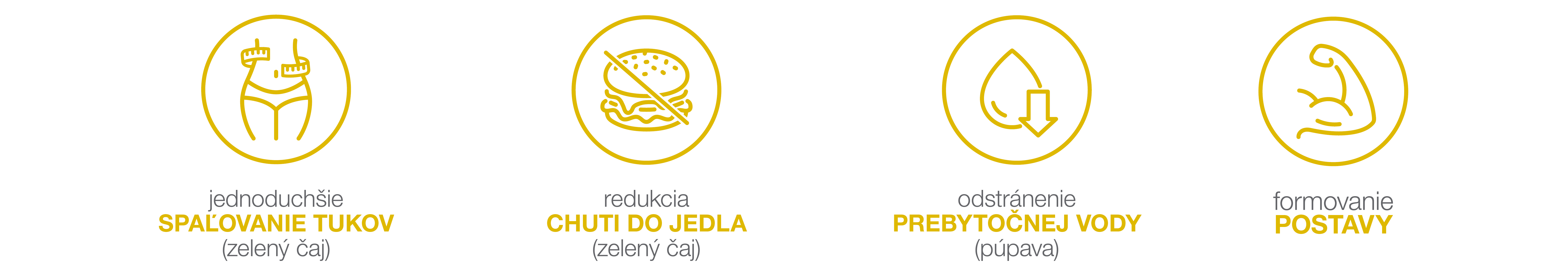 jednoduchšie spaľovanie tukov (zelený čaj); efektívne chudnutie a zníženie hmotnosti (opuncia)