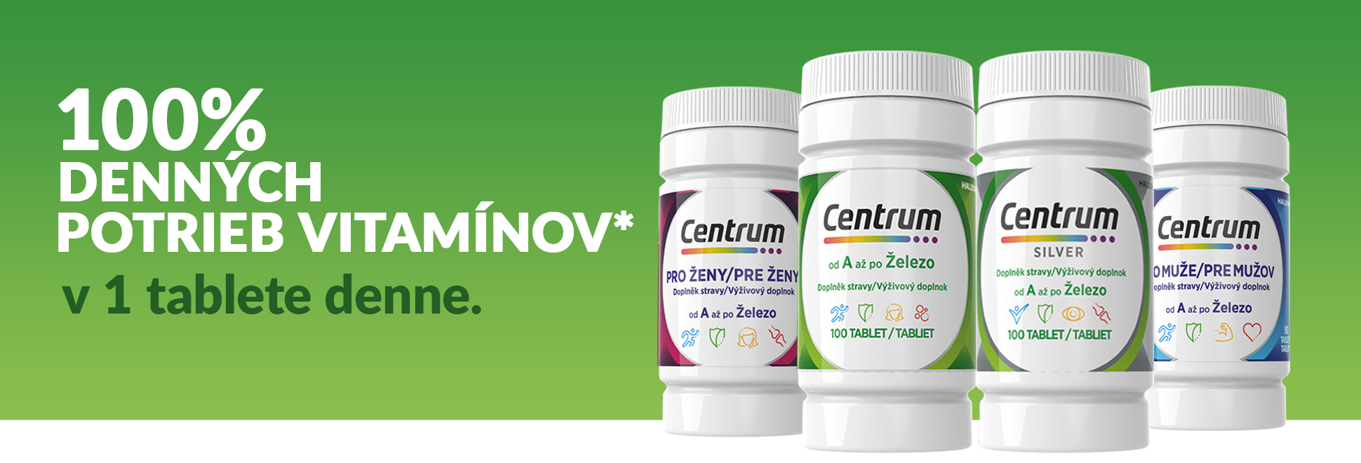 - Centrum od A až po Železo obsahuje kompletné a vyvážené zloženie 13 vitamínov, 11 minerálov a stopových prvkov