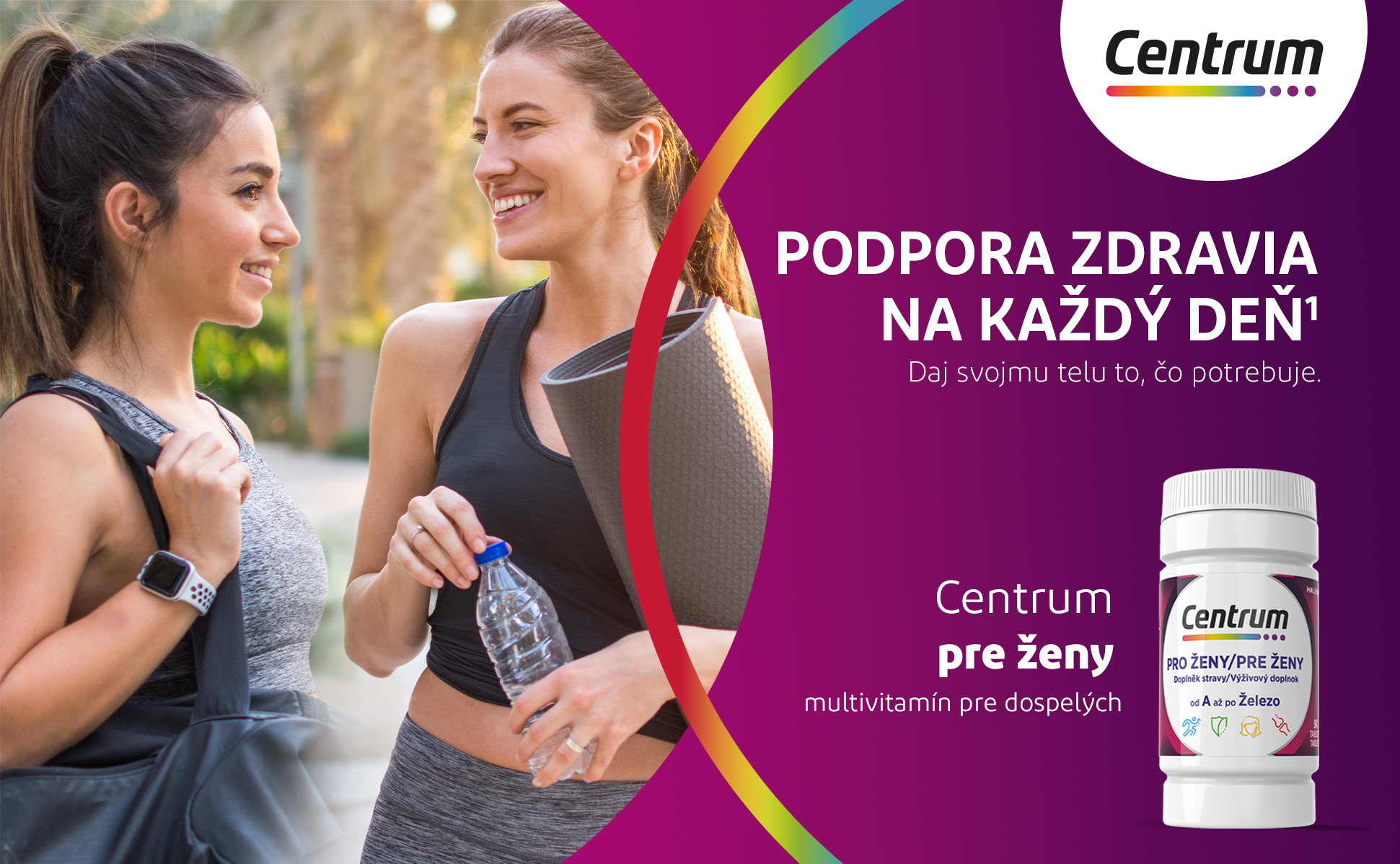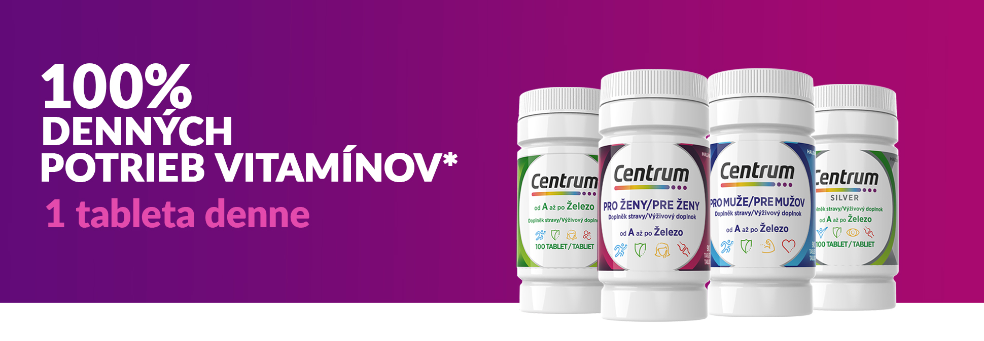 * Centrum pre ženy a Centrum pre mužov pokrýva aspoň 100 % referenčnej výživovej hodnoty (RVH) vitamínov D, C, E, B1 , B2, B6, B12, niacínu, biotínu, kyseliny listovej a kyseliny pantoténovej.