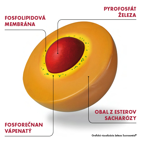 Technológia Sucrosomial® znamená, že železo v produkte je chránené fosfolipidovou membránou a obalom z esterov sacharózy.