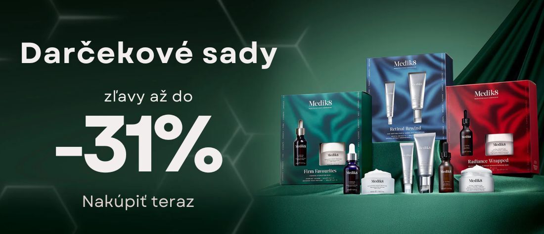 Ak vám naozaj záleží na zdraví vašej pleti, potrpíte si na kvalitu a vysokú účinnosť, potom je pre vás ako stvorená kozmetika Medik8. Jej vyššia cena sa odráža práve na jej 👉 kvalite. Lekársku kozmetiku Medik8 si však teraz môžete v našej lekárni zakúpiť za výhodné ceny. Pozrite si bohatú ponuku kozmetických balíčkov a vyberte si kozmetiku, ktorá ponúka riešenia pre rôzne typy pleti. Či už 👵 starnúcu, pleť s akné, suchú pleť alebo pokožku s nadmernou pigmentáciou.