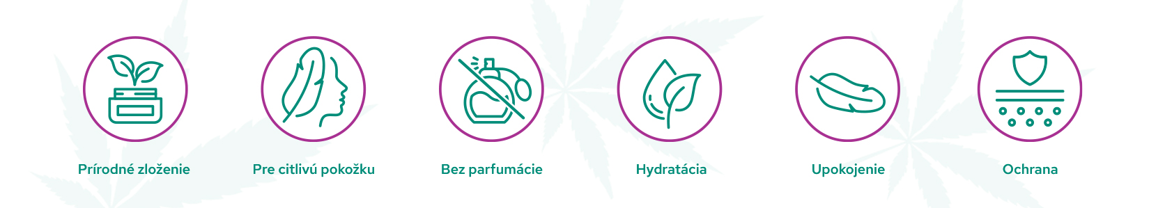 konopný olej a extrakt, bambucké maslo (maslovník), myrha, majoránka