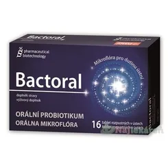 Bactoral je orálne probiotikum, ktoré sa rozpúšťa v ústach a obsahuje baktérie rodu Streptococcus salivarius K12, v množstve 2×10⁹ CFU. Tieto baktérie majú prirodzenú schopnosť kolonizovať sliznice dutiny ústnej a nosohltana, vytesňujú veľké množstvo potenciálnych orálnych patogénov (napr. Streptococcus pyogenes – pôvodca respiračných ochorení alebo Streptococcus pneumoniae – pôvodca zápalu stredného ucha) a produkujú antimikrobiálne látky (BLIS), ktoré tieto nepriateľské mikróby zabíjajú.
