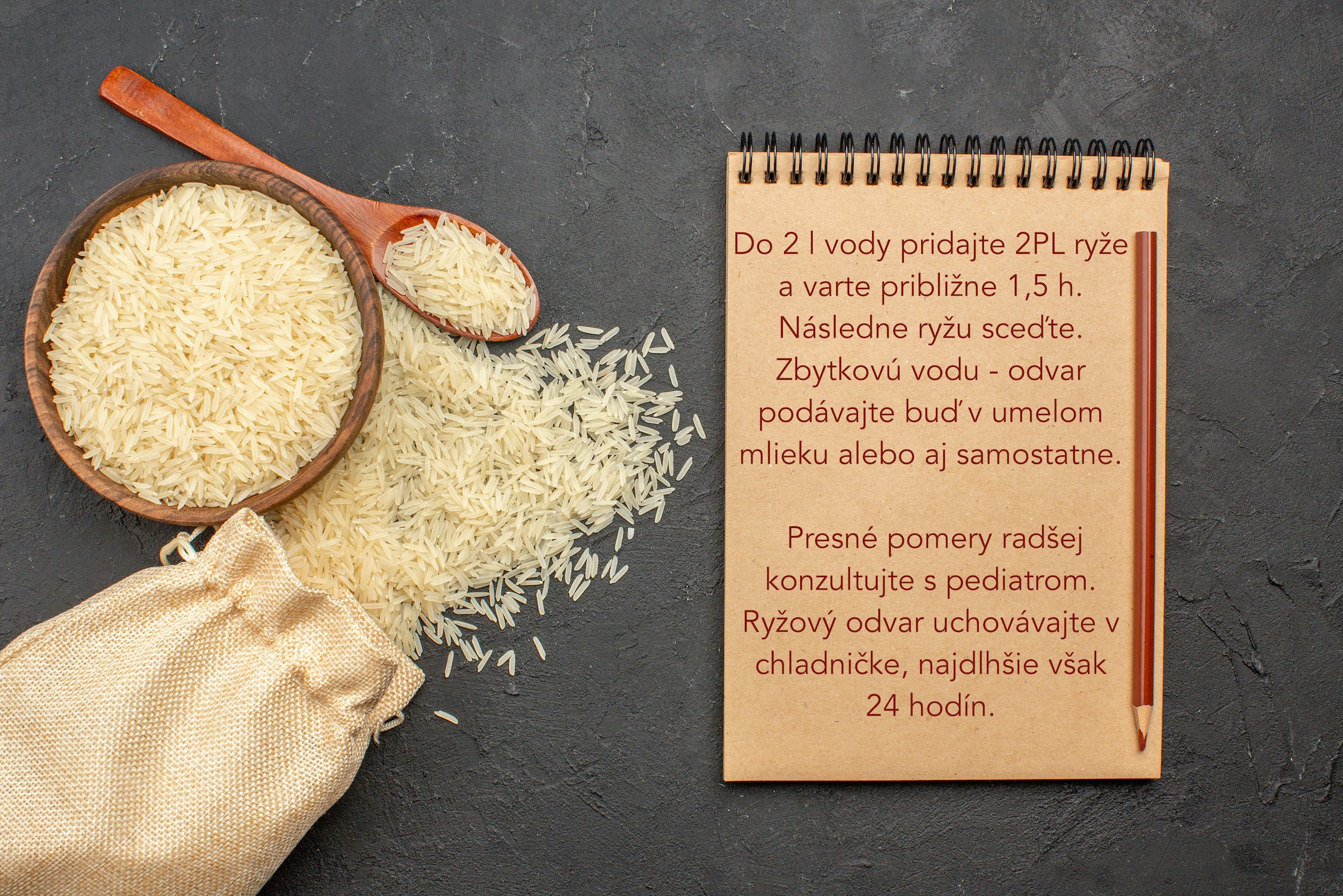 Tip: Obľúbeným domácim receptom na zahustenie stolice u hnačkujúcich dojčiat je tzv. ryžový odvar.