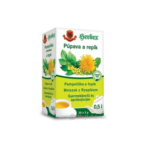 Púpava lekárska - koreň a list (Taraxacum officinale), Repík lekársky - vňať (Agrimonia eupatoria).