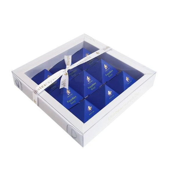 Darčekové balenie obsahuje 9 pyramíd čaju Sapphire Grey: