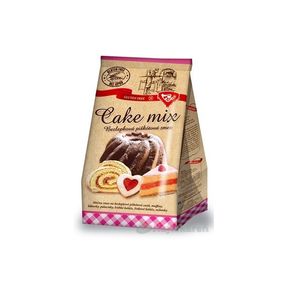 Cake mix je múčna bezgluténová zmes na piškotové cestá, muffiny, bábovky, palacinky, krehké koláče, lístkové cestá, sušienky. Neobsahuje glutén, cukor, vajcia, laktózu, sóju a farbivá.