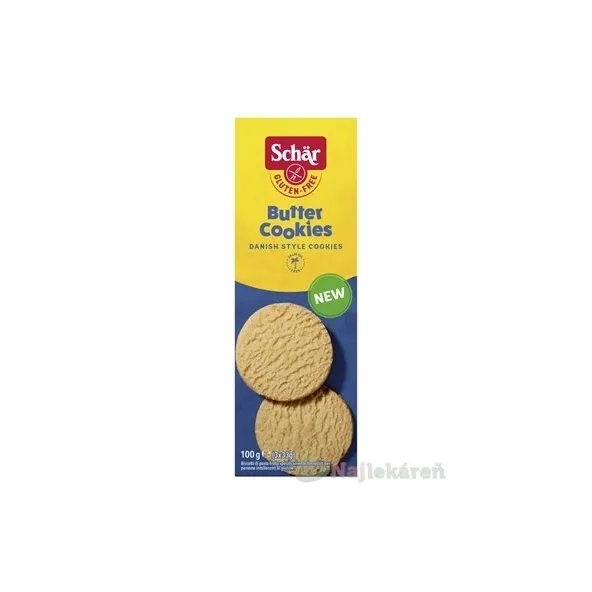Zloženie: kukuričná múka, maslo 30% (mlieko), cukor, sójová múka, modifikovaný kukuričný škrob, soľ. Môže obsahovať vlčí bôb. BEZ PŠENICE. Viac na adc.sk