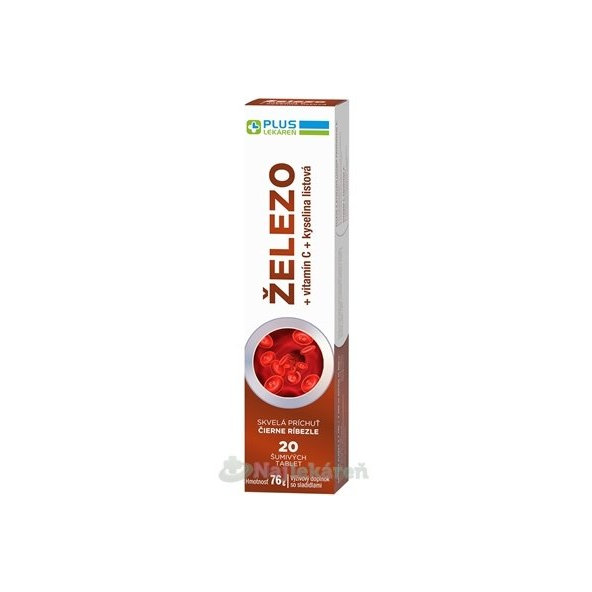 PLUS LEKÁREŇ Železo + vitamín C + kyselina listová šumivé tbl s príchuťou čierne ríbezle 20 ks