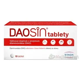Daosin je výživový doplnok určený na podporu pri histamínovej intolerancii. Obsahuje enzým diaminooxidáza (DAO), ktorý pomáha štiepiť histamín v tráviacom trakte. Daosin kapsuly sú vhodné pri problémoch ako nafukovanie, kožné vyrážky, bolesti hlavy či tráviace ťažkosti po konzumácii potravín s vysokým obsahom histamínu. Pravidelné užívanie Daosinu môže zmierniť príznaky histamínovej reakcie. Doplnok je ideálny ako podpora pri nízkohistamínovej diéte. Daosin na histamínovú intoleranciu je odporúčaný pred jedlom, ktoré môže obsahovať histamín. Vhodný pre dospelých a dostupný bez lekárskeho predpisu. Výrobok je bezpečný, kvalitný a klinicky overený. Zmiernite prejavy histamínovej intolerancie efektívne s Daosin.