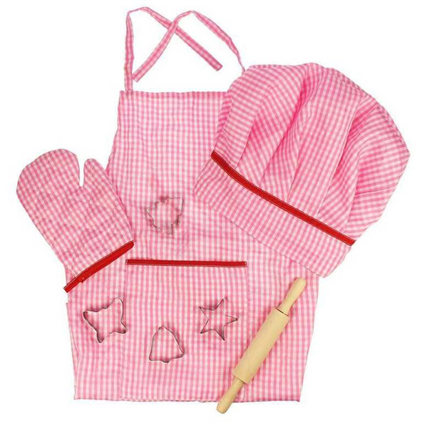 Mladí kuchári / ky budú milovať túto svetlú a pekne ružovou bavlnenou sadu na pečenie alebo varenie, ktorá obsahuje zásteru, chňapku, kuchársku čiapku, valček a vykrajovátka. Ideálne pre použitie v asistovanom varenie alebo pečenie, alebo na použitie v našom drevenom kuchynskom sortimente ako súčasť hracích rolí, ktoré si vaše dieťa určite rado stvárni.