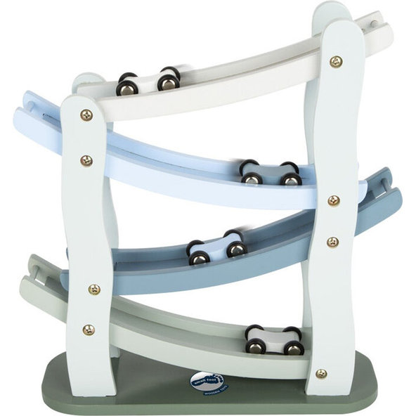 Na značku, pripravte sa, štart! Táto drevená kaskádová pretekárska dráha ponúka priestor na meranie rýchlosti 4 autíčok. Od jednej úrovne k druhej robia autá saltá a len ich sledovanie je zábavné. Dráha je vyrobená z prírodného a bieleho dreva, jedno autíčko je prírodné, ostatné 3 sú farebné. Hračka rozvíja detskú motoriku a koordináciu ruka-oko.
