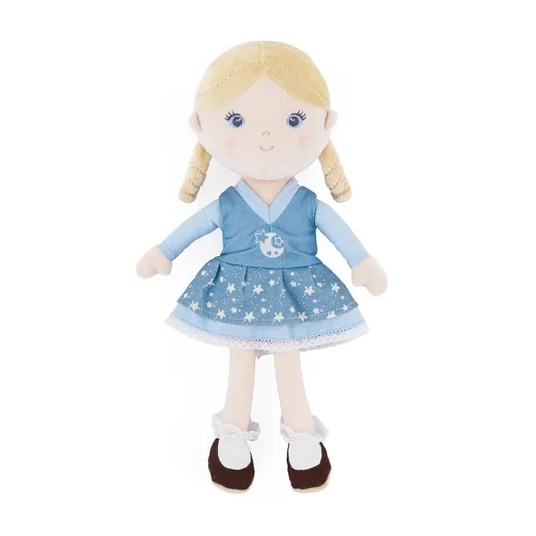Bábika je vyrobená z veľmi príjemného materiálu s krásnymi šatami, dokonale upravenými zlatými vrkočmi. Ak sa zašpiní, môžete ju jednoducho ručne vyprať pri teplote 30°. Vďaka rôznym tvarom a textúram podporuje u detí predstavivosť a fantáziu a rozvíja poznávacie schopnosti.