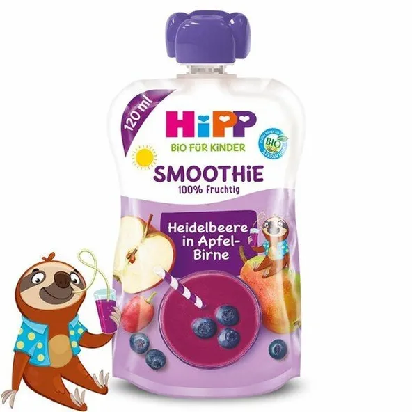 HiPP BIO Smoothie mix jablko-hruška-čučoriedka je ovocný príkrm pre deti od ukončeného 1. roku. Ovocná kapsička je vhodná desiata pre deti plná potrebných vitamínov.