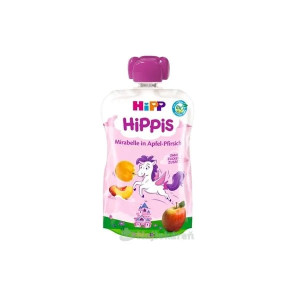 HiPP HiPPis BIO jablko-broskyňa-mirabelka je ovocný príkrm pre deti od ukončeného 1. roku. Ovocná kapsička je vhodná desiata pre deti plná potrebných vitamínov.