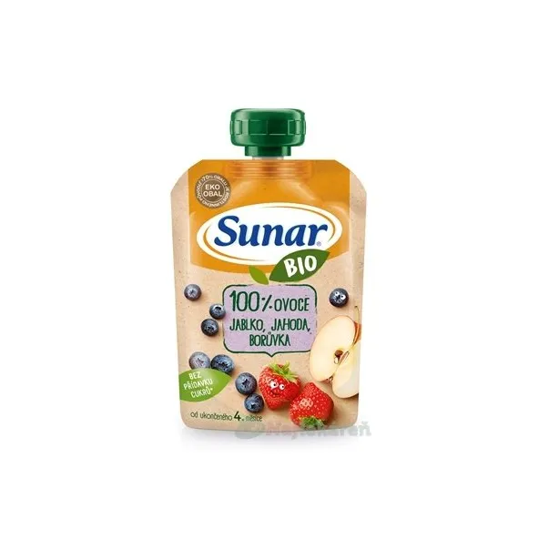Sunar BIO Kapsička Jablko, jahoda, čučoriedka 100 % ovocia (od ukonč. 4. mesiaca) 100 g