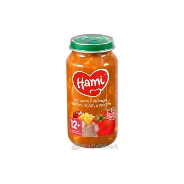 Hami príkrm makaróny s duseným bravčovým mäsom, paradajkami a paprikou vhodný od ukončeného 12.mesiaca.