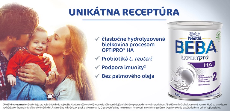BEBA® EXPERTpro HA 2 je mliečna výživa určená pre dojčatá od ukončeného 6. mesiaca. Obsahuje unikátnu kombináciu zložiek - čiastočne hydrolyzovanú bielkovinu získanú procesom OPTIPRO® HA, baktérie L. reuteri, vitamíny* a minerálne látky* pre uspokojenie potrieb vášho dieťatka.