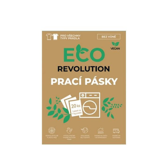 Pracie pásiky EcoRevolution sú vynikajúci koncentrovaný prací prostriedok bez vody, ktorý neobsahuje žiadne alergény, parabény, SLS, 1,4 dioxán ani fosfáty. Balenie pracích pásikov ušetrí nielen miesto, ale oproti bežným pracím gélom a práškom sú oveľa ľahšie, jednoducho skladovateľné a ak vyrážate na cesty, pribalíte ich do každej tašky.