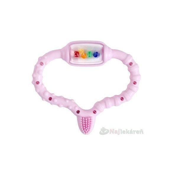 CURAPROX Baby Hryzadlo ružové zmierňuje bolesť a nepohodlie pri prerezávaní prvých zubov.