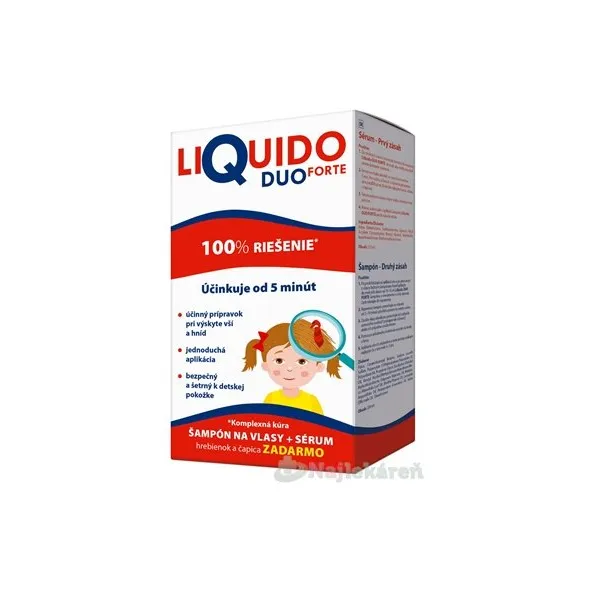 LiQuido DUO FORTE predstavuje dvojitý zásah proti všiam, v podobe šampónu a séra na vlasy zadarmo. Účinkuje do 5 minút. Zobraziť viac