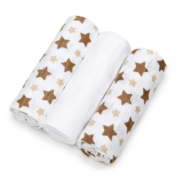T-TOMI Plienky bambusové BIO, 70 x 70 cm, 3 ks, béžové hviezdičky