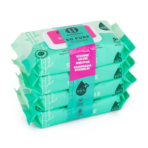 4x PETITE&MARS Obrúsky vlhčené SO PURE bambusové bioodbúrateľné 56 ks