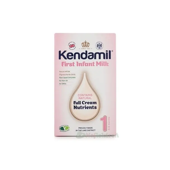 - Dojčenské mlieko Kendamil je pripravené s vitamínmi a minerálmi a obsahuje rovnováhu prírodných srvátkových a kazeínových bielkoviny, prebiotiká (GOS) a esenciálne mastné kyseliny omega 3 a 6.