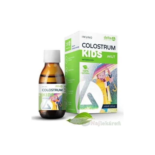 Tekutý výživový doplnok DELTA COLOSTRUM® KIDS 100% Natural: odtučnený a zbavený kazeínu.