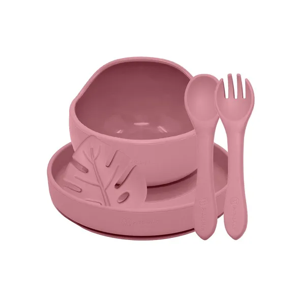 PETITE&MARS Set jedálenský silikónový TAKE&MATCH 4 ks Dusty Rose 6m+