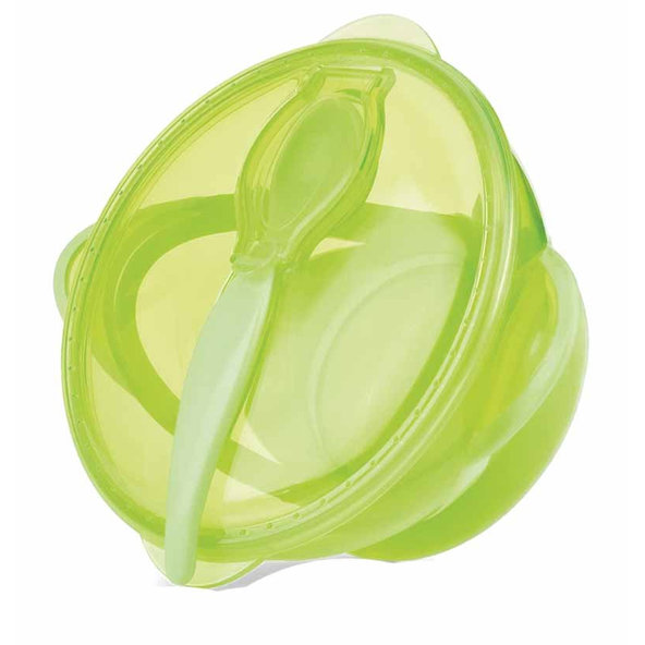 NUBY Miska s prísavkou, viečkom a lyžičkou 6 m+ zelená