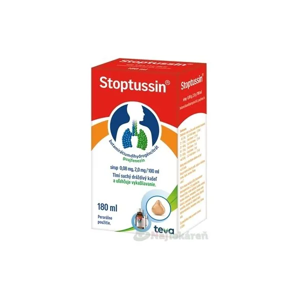 Stoptussin účinne tlmí suchý a dráždivý kašeľ, vhodný pri infekciách horných a dolných dýchacích ciest.