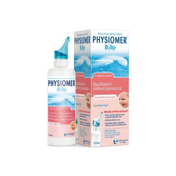 PHYSIOMER BABY jemne odstraňuje nadbytočný hlien, nečistoty a dráždivé látky z nosovej sliznice prí nádche a upchatom nose.