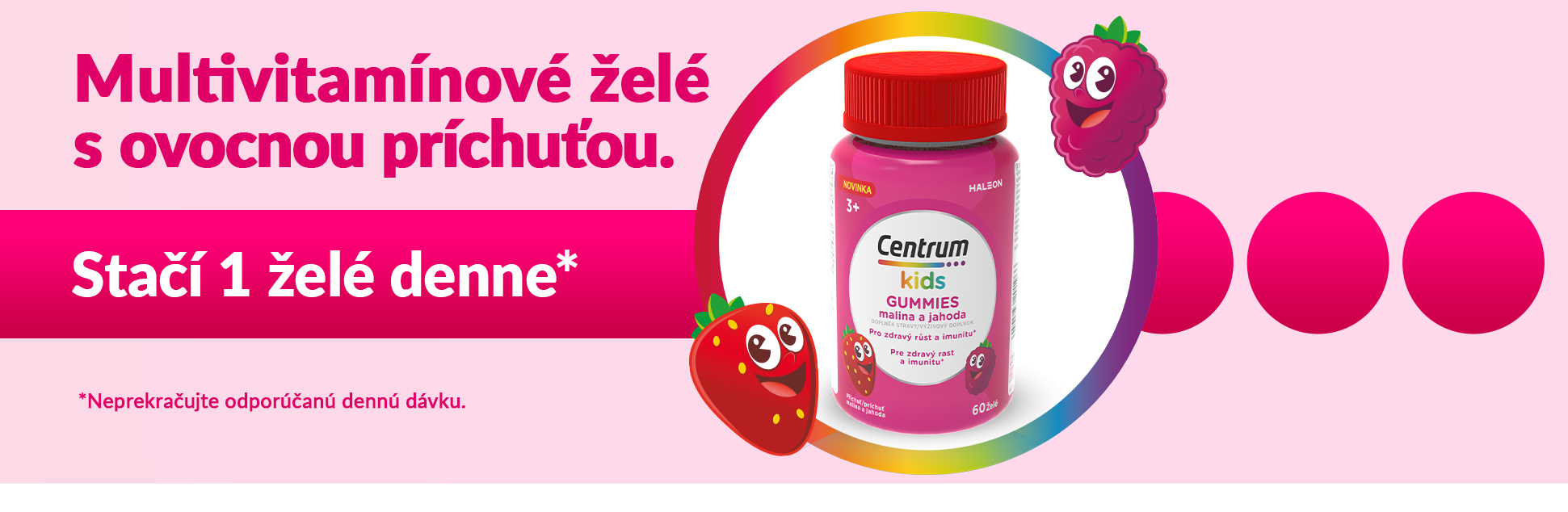Centrum KIDS GUMMIES malina a jahoda multivitamín je vhodný pre podporu zdravého rastu a imunity od 3+. S príchuťou maliny a jahody.