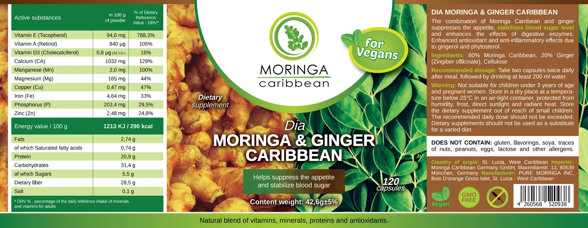 Zloženie Dia Moringa & Ginger Caribbean: