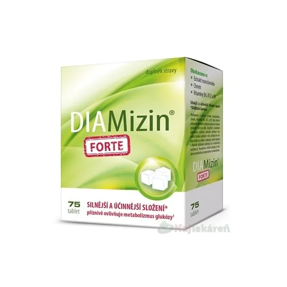 DIAMizin FORTE – výživový doplnok, ktorý má silnejšie a účinnejšie zloženie obohatené o extrakt morušovníka, chróm a vitamíny B6, B12 a B9, vďaka ktorým DIAMizin FORTE spoločne s extraktom Gymnema sylvestre pomáha udržiavať správnu hladinu glukózy v krvi.