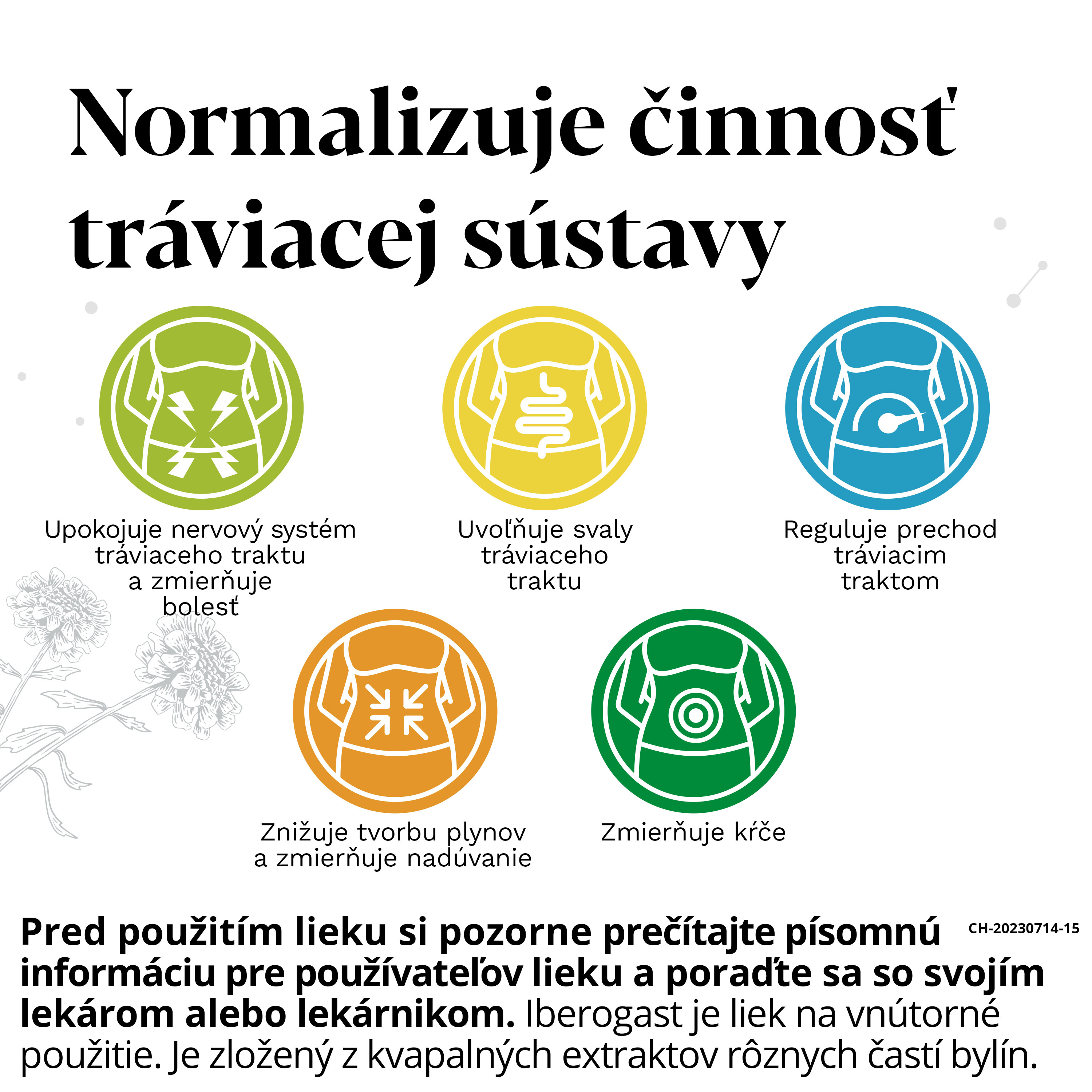 Rastlinný liek na liečbu žalúdočno-črevných ochorení, bolesti žalúdka a brucha, pálenie záhy, pocit plnosti, žalúdočno-črevné kŕče a nevoľnosť.