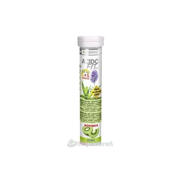 ACIDOFIT MD KIWI výživový doplnok s rehydratačným účinkom doplnený o zmes prírodných extraktov zo zeleného čaju, alfalfa a aloe vera na podporu detoxikácie.