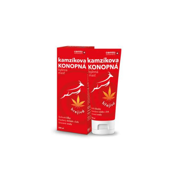 Cemio Kamzíkova konopná bylinná masť hrejivá je určená na masáže v oblasti kĺbov, krku, chrbta a svalov. Po vmasírovaní do pokožky prináša rýchly a dlhotrvajúci pocit prehriatia a uvoľnenie vďaka unikátnemu zloženiu vysoko koncentrovaných bylinných extraktov z konope, arniky, kostihoja, borievky a ďalších látok s hrejivým efektom.