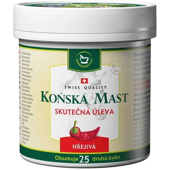 Konská masť hrejivá pomáha pri ťažkostiach spojených s artritídou, reumatickými stavmi, zápalmi šliach a kĺbových puzdier, miestnymi opuchlinami, bolesťou svalov, chrbtice a pri ischiatických ťažkostiach.