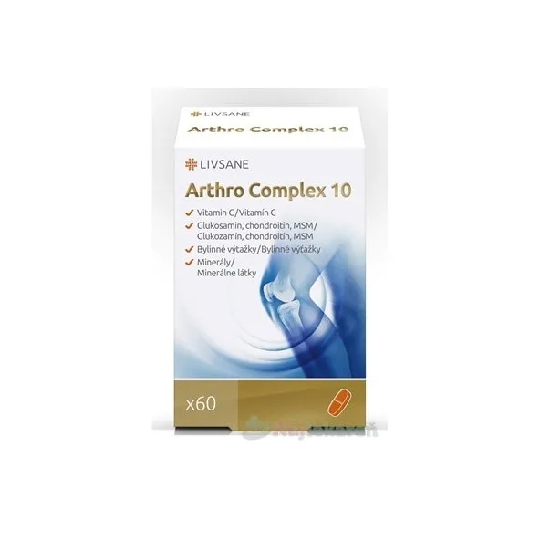 LIVSANE ARTHRO COMPLEX 10 – výživový doplnok s vitamínom C, glukozamínom, chondroitínom, MSM, bylinnými výťažkami a minerálnymi látkami: Chrupavky, kosti a spojivové tkanivá ľudí sú