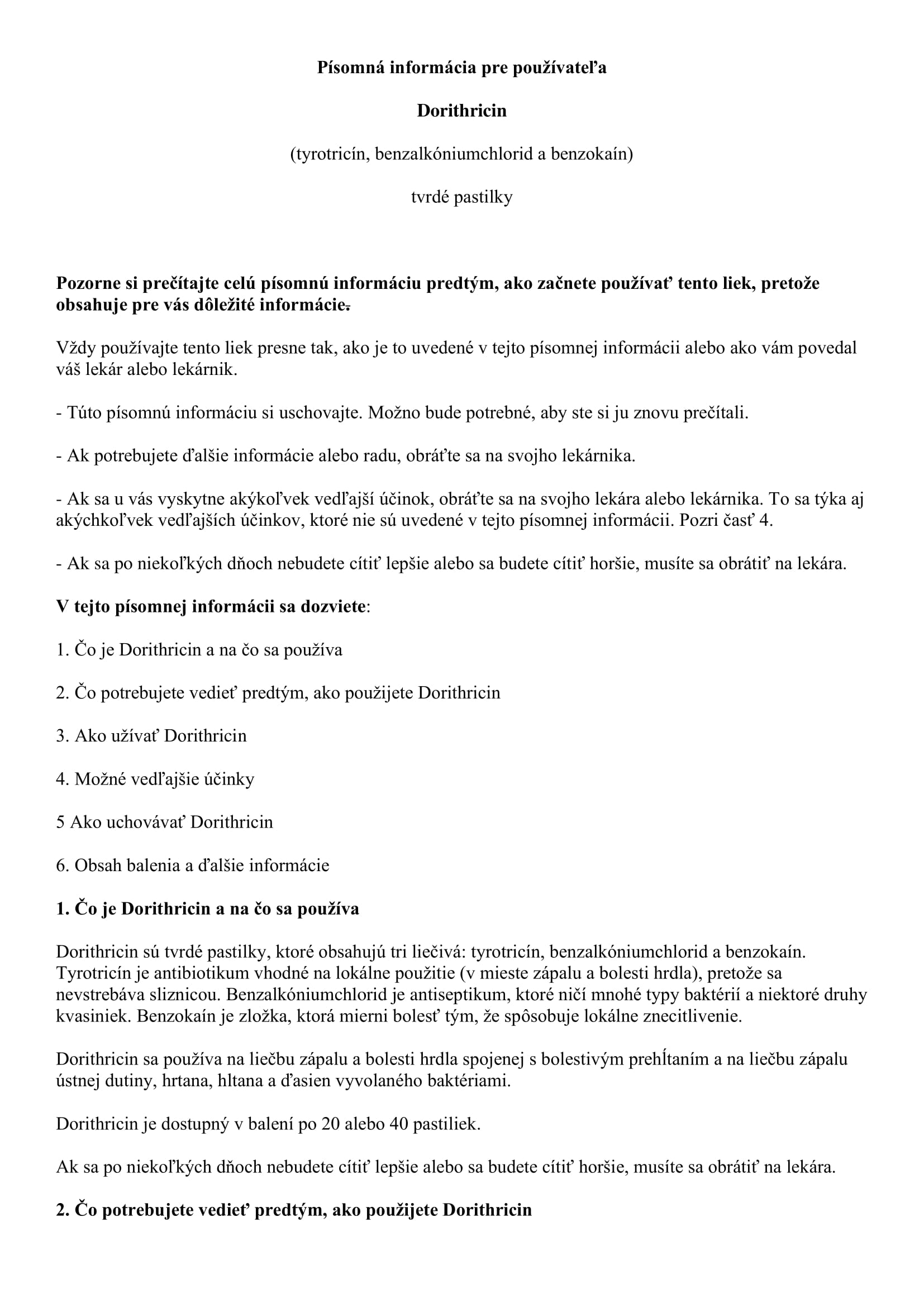 Dorithricin je liek, ktorý dostanete bez lekárskeho predpisu. Vďaka trom účinným zložkám, liečo problém tam kde vzniká. Dorithricin pastilka na bolesť hrdla, obsahuje lokálne antibiotikum. Dokáže cielene atakovať pôvod ochorenia a lieči infekciu v mieste ochorenia.