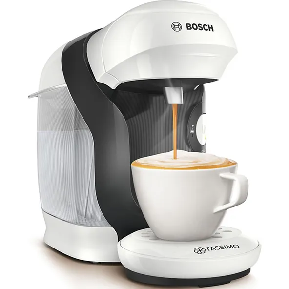 Bosch Style Tassimo je moderný kávovar s inteligentnými funkciami, ktorý v bielo-čiernom prevedení umožňuje prípravu širokej škály lahodných nápojov.