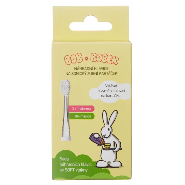 Bob a Bobek náhradné hlavice na detskú sonickú kefku od 18 mesiacov, 4 ks
