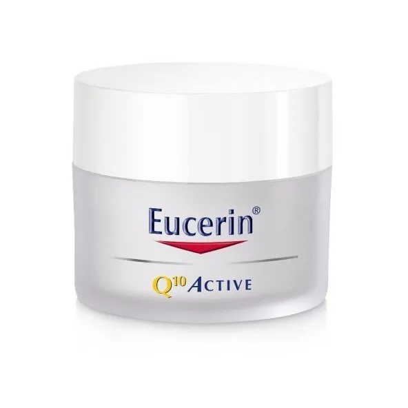 Eucerin Vyhladzujúci denný krém proti vráskam Q10 ACTIVE obsahuje pleti vlastný koenzým Q10, ktorý navracia bunkám energiu, a jeho prirodzené množstvo v pleti sa vekom znižuje. Krém pôsobí účinne proti príznakom starnutia a redukuje vrásky i u citlivej pleti. Pridané antioxidanty, vitamíny C, E a H (biotín) vyživujú pleť, zmierňujú podráždenie a chránia pred negatívnym pôsobením voľných radikálov. Zloženie bez parfumácie, farbív, alkoholu a parabénov je vhodné i pre veľmi citlivú pleť, ktorá sa ľahko podráždi. Pravidelným používaním pleť získa hladší a pevnejší vzhľad.