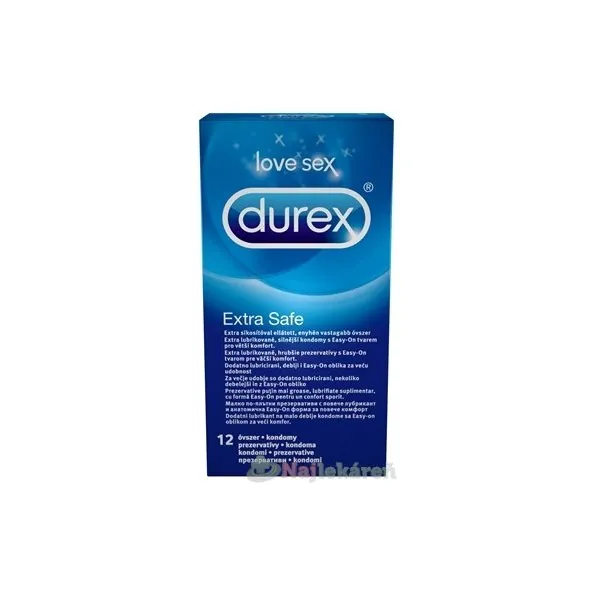 Anatomicky tvarované kondómy DUREX Extra Safe z hrubšieho latexu a extra lubrikované pre lepší komfort a pokojnejšiu myseľ.