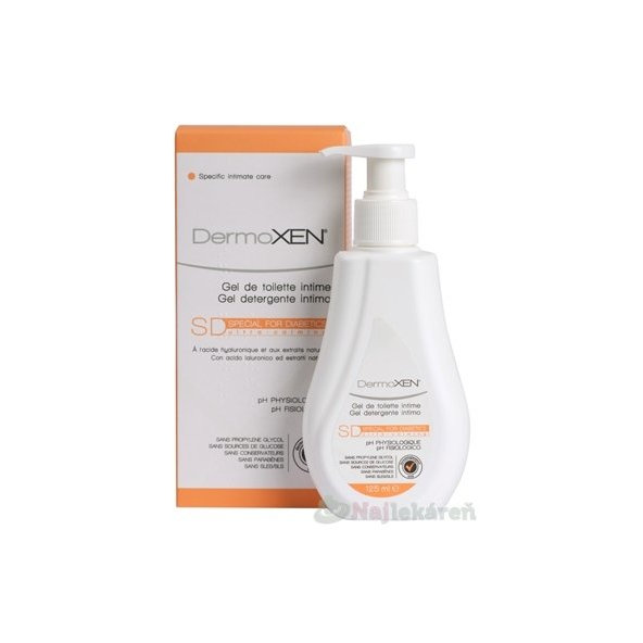 DermoXEN SD intímny upokojujúci gél určený na intímnu hygienu žien - diabetičiek. Ženy s diabetom častokrát trpia prejavmi pálenia a začervenania kože v intímnych zónach, ktoré sa často spájajú s bakteriálnou infekciou. K tomuto javu dochádza preto, že patogénne baktérie a kvasinky majú tendenciu množiť sa rýchlo v prítomnosti vysokej hladiny glukózy. To má za následok zmenu fyziologickej rovnováhy v prostredí pošvy a nárast hodnôt pH.